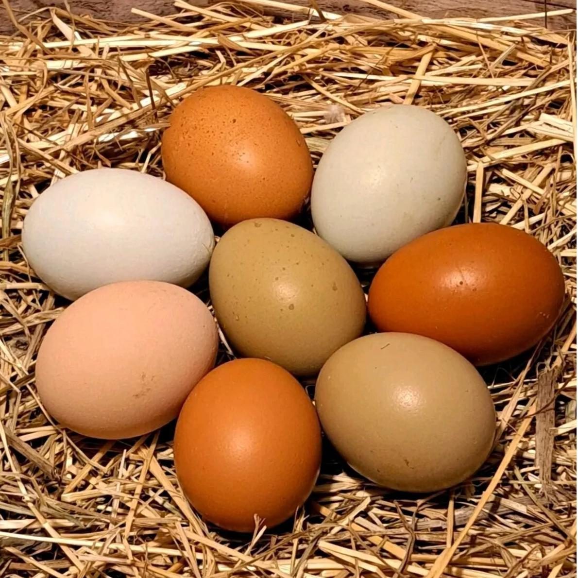Entsprechend bunt sind auch die Eier. Von weiß, braun, beige bis hellblau und oliv ist alles dabei.